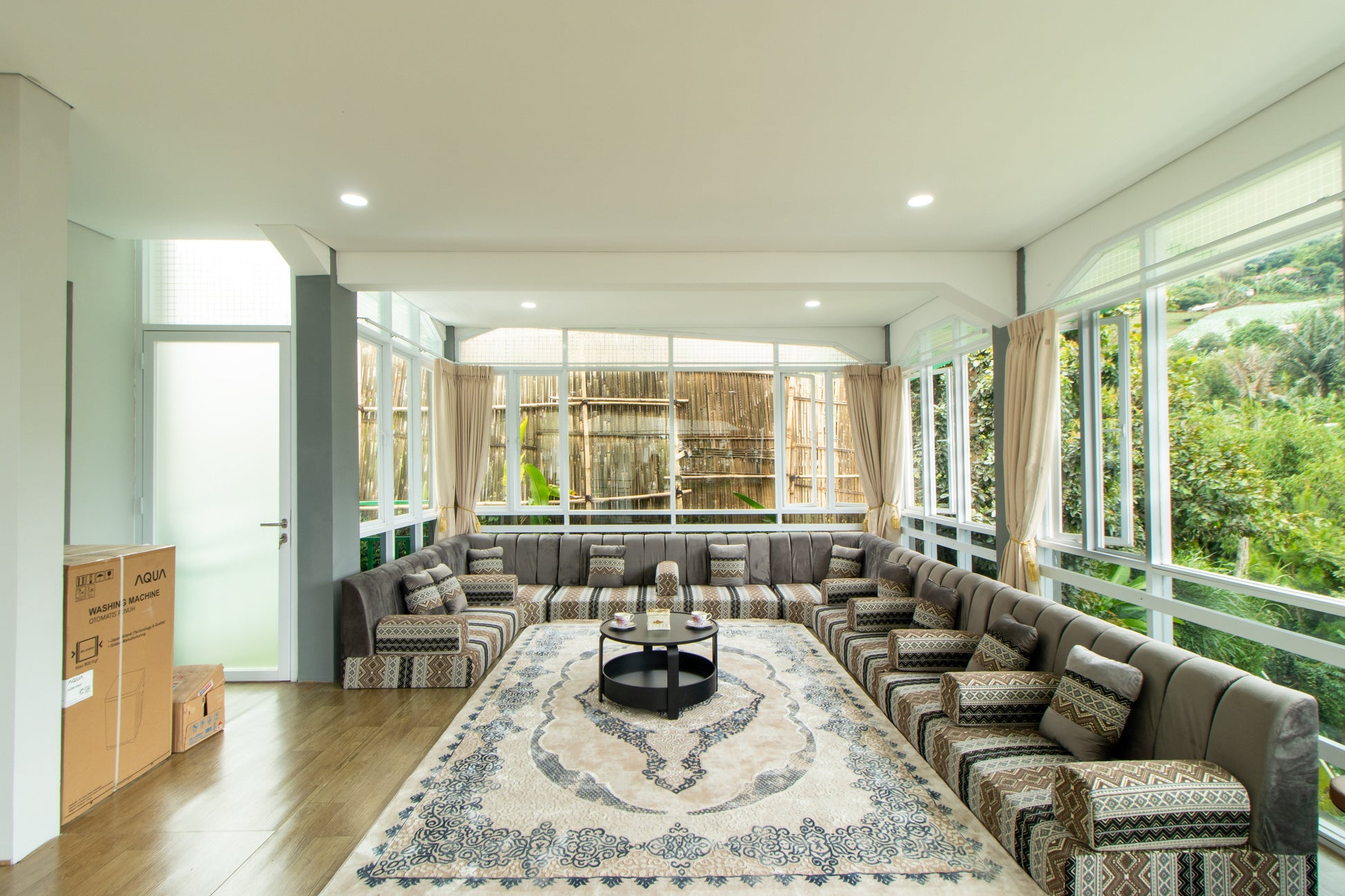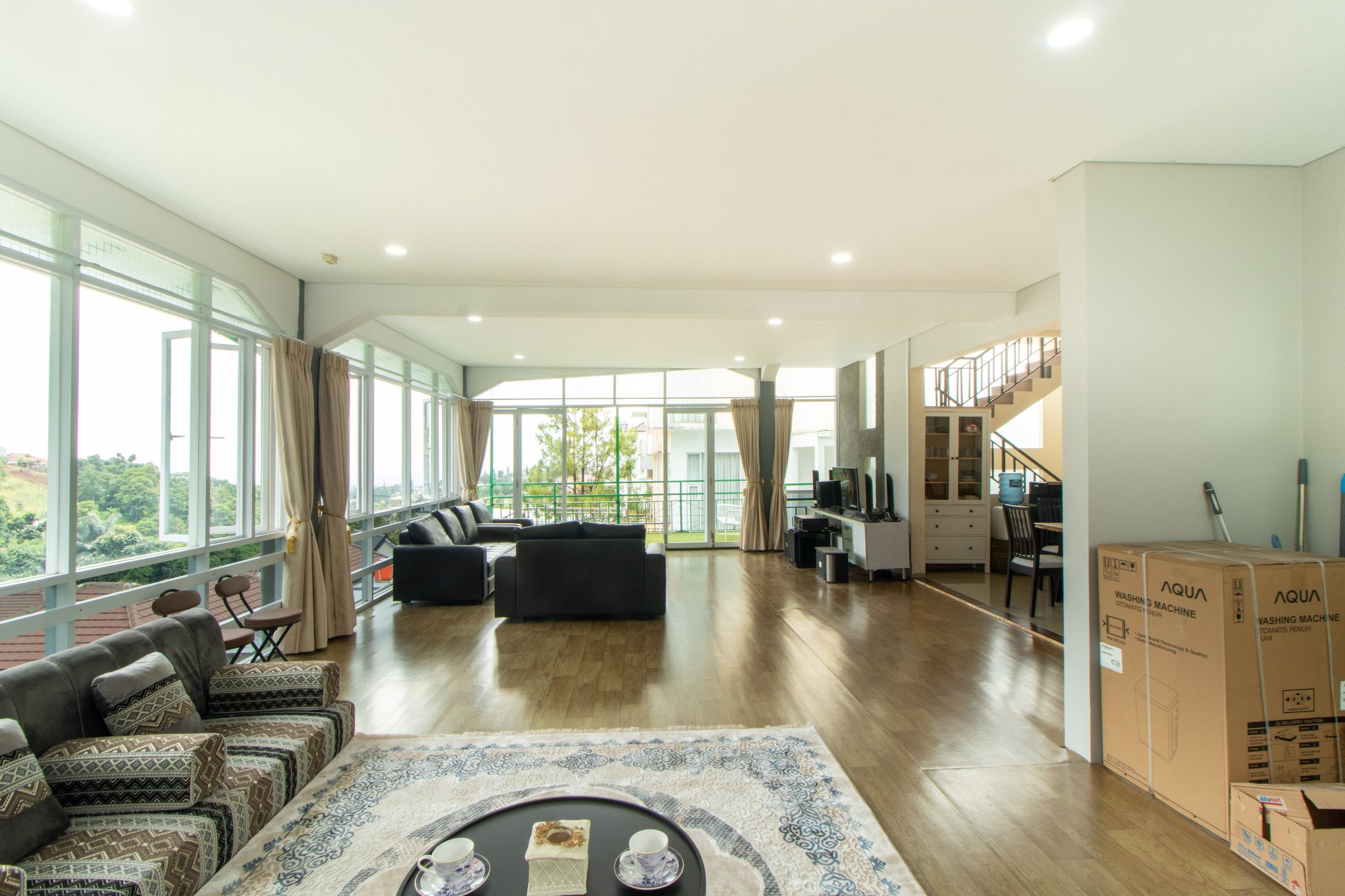 - Ruang tamu luas dengan TV 43 inci