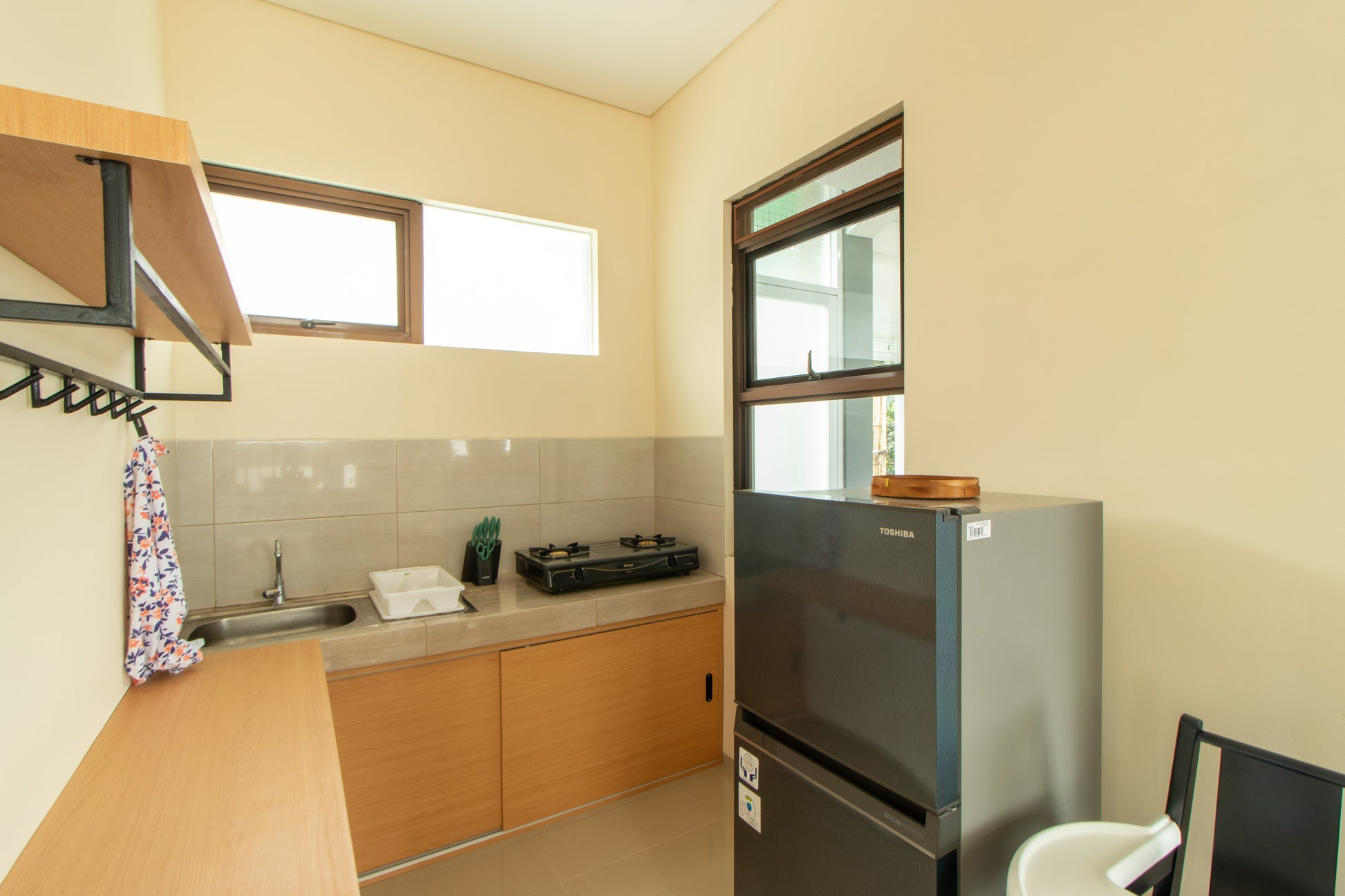 - Dapur lengkap dengan kulkas, rice cooker, dan peralatan masak
